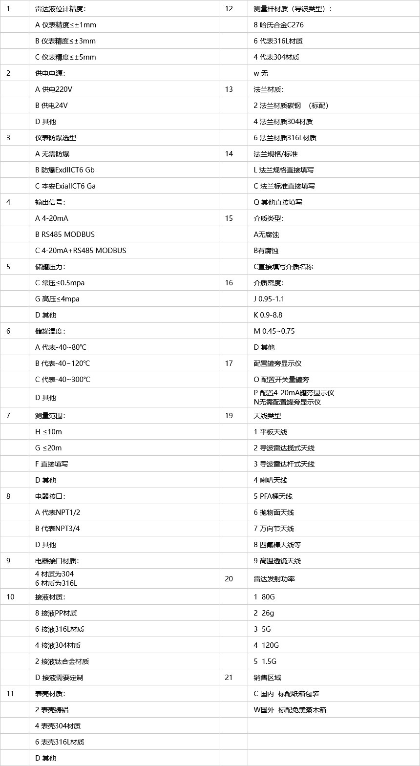 輸出信號4-20mA/HART RS485 MODBUS通訊